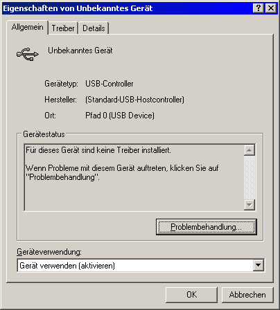 Stecke ich es allerdings direkt an meinen Rechner, findet der nur ein unbekanntes USB Gerät. Eigentlich sollte unter XP kein extra Treiber dafür nötig sein. Eingebaut ist der Chip PL-3507. Laut Hersteller des Chips ist für den auch kein extra Treiber für XP vorhabden. XP soll das Gerät so erkennen und einen eigenen Treiber verwenden.