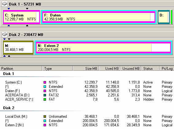 Eigentlich sollten 2 NTFS-Partitionen drauf sein, jetzt ist nur noch eine drauf, die andere mit meinen Backups wird jetzt als RAW angezeigt. Ich hatte bisher keine Probleme damit und habe auch nichts am System rumgebastelt, die Partition ist einfach weg... (siehe Screenshot)
