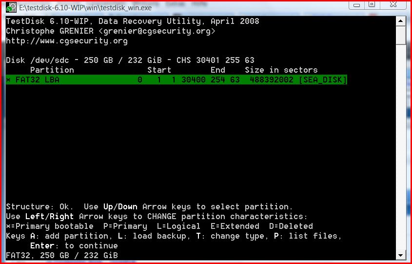 Stelle dazu gleich ein paar screenies von Testdisk rein(10,betaversion).Ach ja,zB ZAR und andere Programme hängen sich beim scannen,bis jetzt immer auf...auch testdisk,wenn man die files anschauen möchte(seems corruped).Als einzige Möglichkeit habe ich den Ausbau noch nicht benutzt,da mir schlicht momentan der richtige "Schlüssel" fehlt