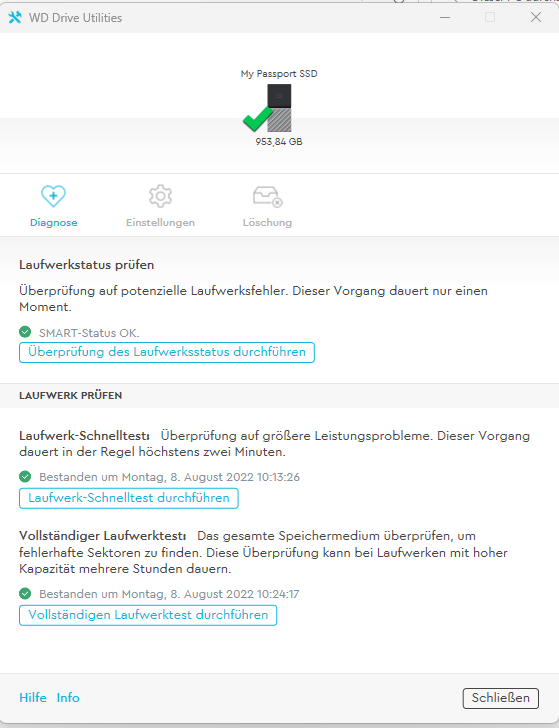 Die WD Software gibt soweit keine Fehler aus: