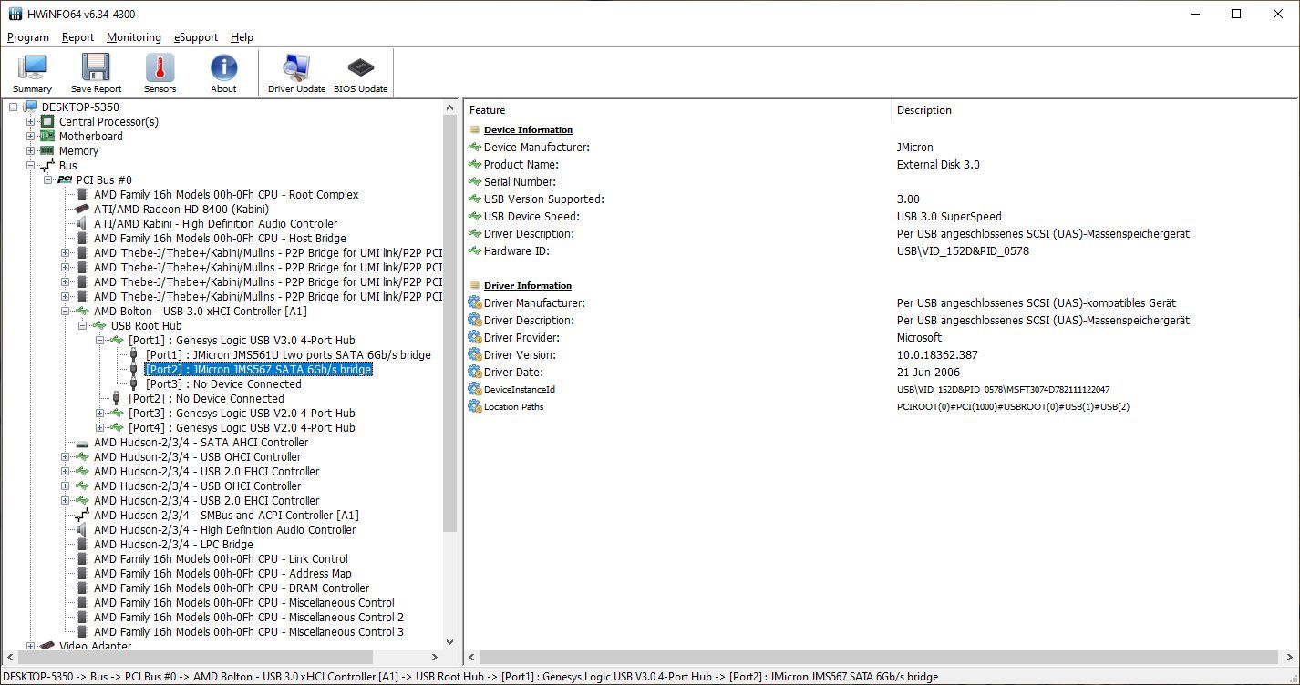 Das kann HWiNFO64 anzeigen bei den USB 3.0 Hubs, wo er angeschlossen ist.