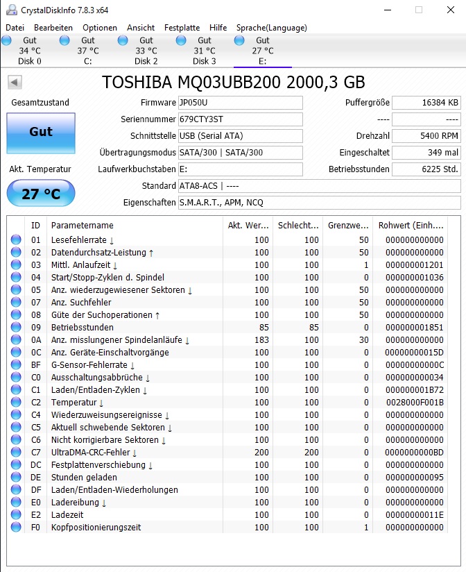 ich benutze zZ eine externe Festplatte von Toshiba, die per USB an den PC angeschlossen ist. Hauptsächlich wird sie für Backups verwendet. Letzt habe ich festgestellt, dass sich auf der Platte ca. 200 MB nicht zugewiesener Speicher befindet (über die Datenträgerverwaltung) + der Rest der Platte. Ich wollte die Platte wieder vollends zusammenführen und habe bei der Formatierung wohl etwas über die Stränge geschlagen. Ich muss die jetzt wie eine "normal" Platte mappen, damit sie überhaupt angezeigt wird. Außerdem erkennt Windows diese nicht mehr als "Toshiba externe USB ... etc", sondern als das, was ich bei der Laufwerksvergabe/Formatierung eingegeben habe (oder halt als "lokaler Datenträger").