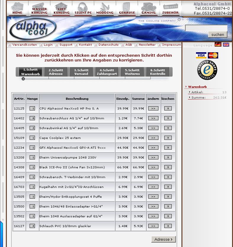 alles in SFR., weil ich die Sachen in der Schweiz bestellen könnte und sind alles Artikel von Aqua Computer.