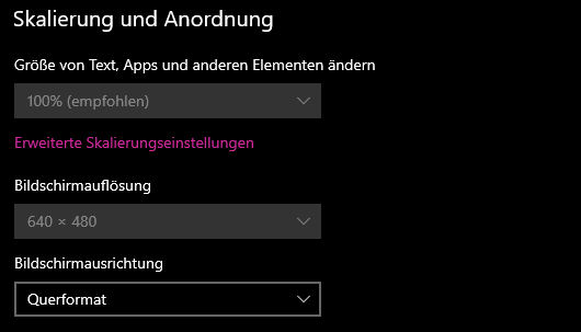 ich habe folgendes Problem, wenn ich meinen externen Monitor an meinen Laptop (Asus G713q) über HDMI anschließe: Die Auflösung lässt sich nicht ändern und hängt bei 640x480px, genauer ist die Option bei Windows 10 ausgegraut: