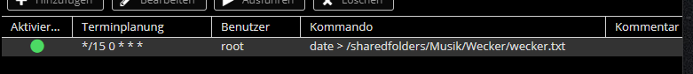 Ich habe es jetzt so eingerichtet wie auf dem Screenshot und habe unter WinSCP nach Ausführung kontrolliert, dass tatsächlich der Datumsstempel sowie die Uhrzeit der wecker.txt aktualisiert wird. Das klappt soweit.