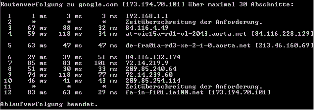Ein tracert zu google.com im Anhang. Könnt ihr mir sagen, ob es an mir (meiner Hardware) liegt, oder ob der Provider daran schuld ist. Ich überlege nämlich schon lange meinen ISP zu wechseln...