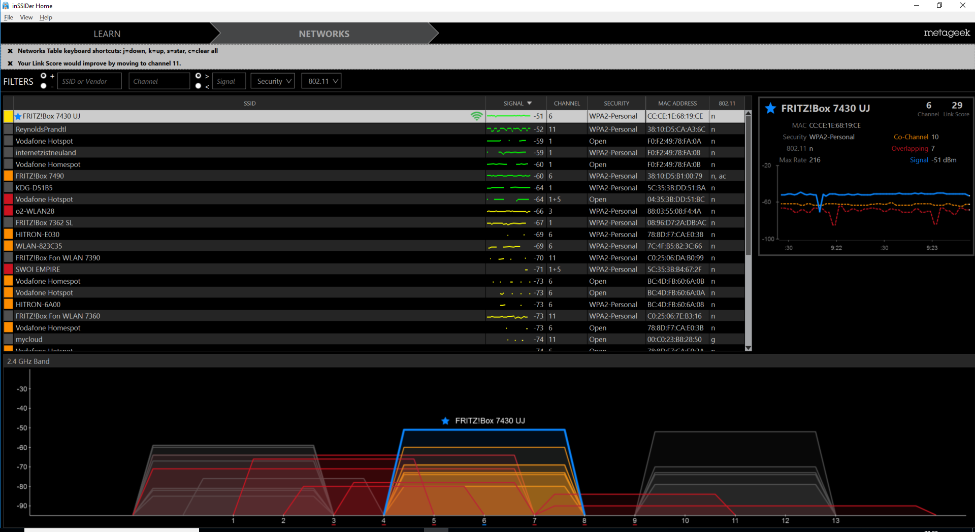 Zu letzterem muss ich sagen, dass ich mit dem Programm "inSSIDer" schon ausgecheckt habe wie es so in der Umgebung mit Wlan-Netzwerken ausschaut. Da ist leider einiges los! Bin Momentan auf Kanal 6 mit 7 "co-Channel" und 6 "Overlapping". (Weis leider gerade nicht wie ich die Aufstellung der Wlan-Kanäle posten kann) Kann es wirklich daran liegen? und wieso funktioniert es dann manchmal?