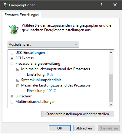 1. Windows Energiesparplan