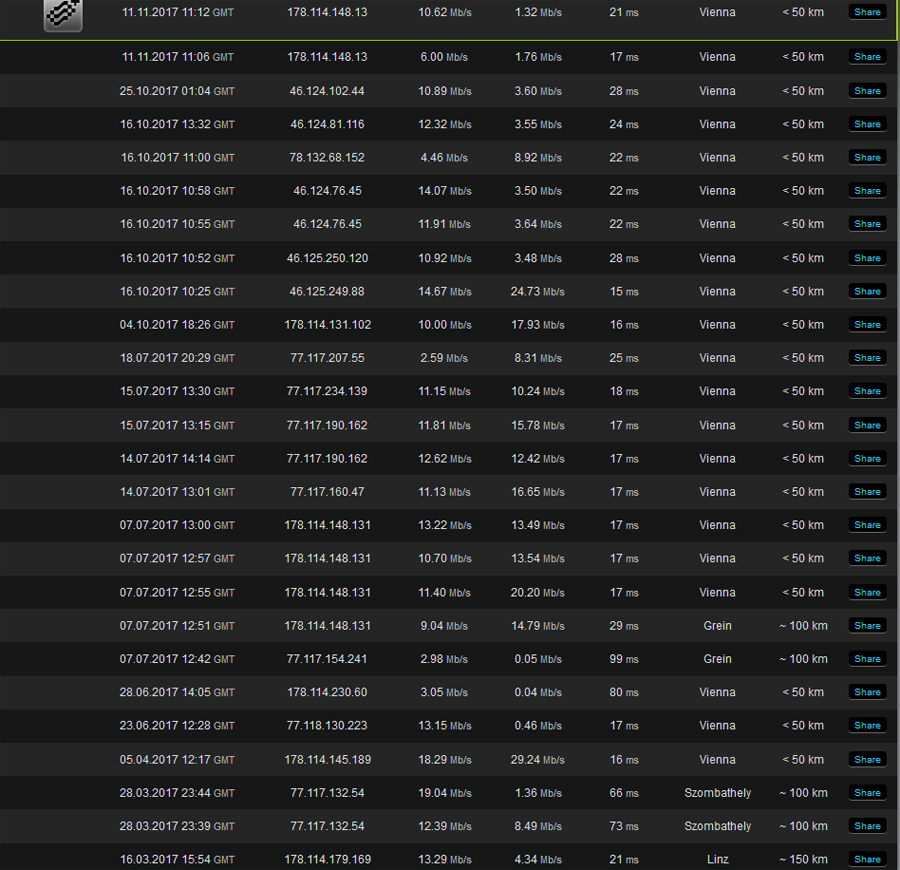 Hallo wie im Titel bereits erwähnt ist mein Internet phänomenal langsam, ich habe einen 3HuiTube 150Mbit allerdings kann man über 150 nur lachen hier der Speed Test über mehrere Monate.