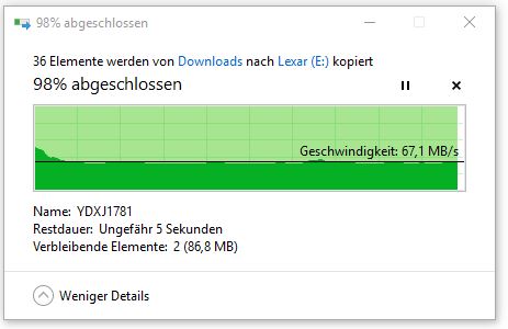 Genau, kleinere Daten werden meist mit geringerer Geschwinigkeit kopiert, größere meistens schneller.