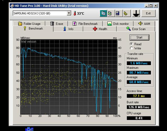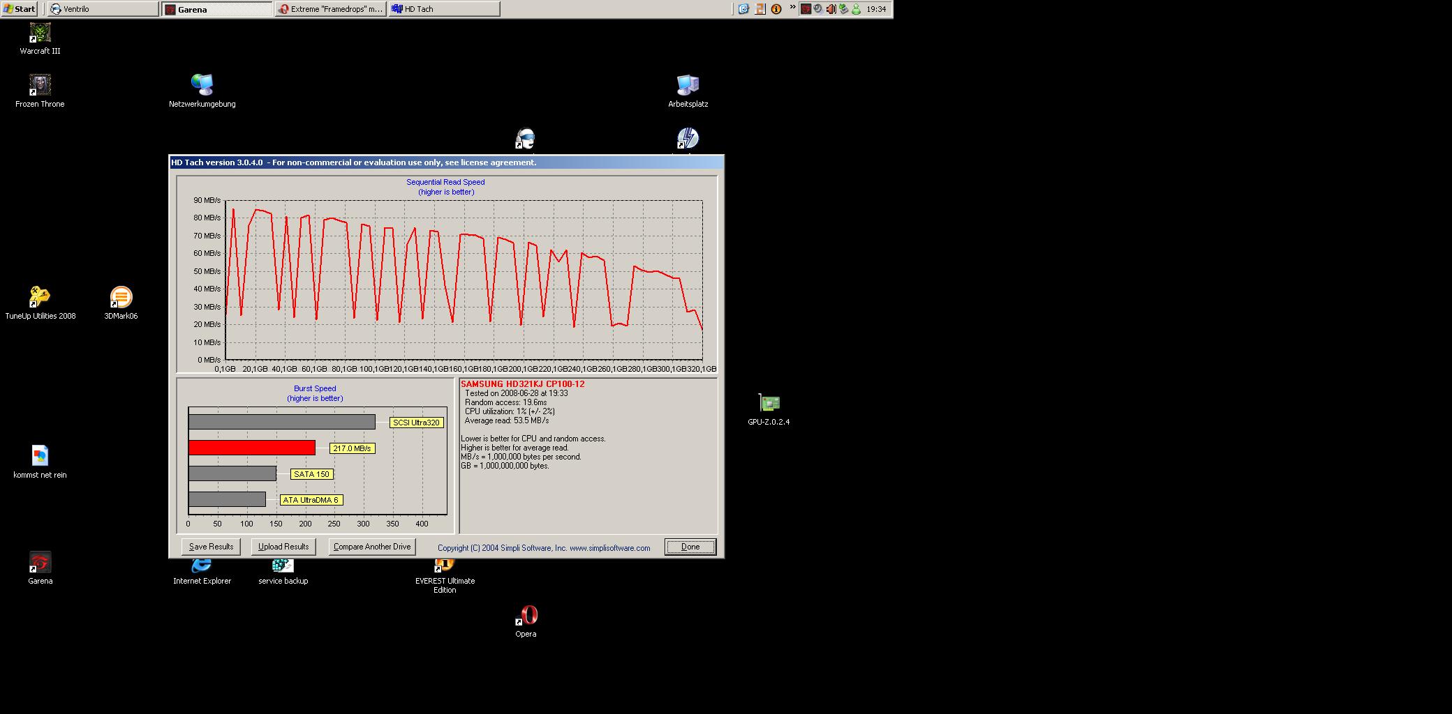 hd tune gesaugt und getestet - teilweise starke schwankungen aber nicht so extrem wie zuvor. was mir allerdings aufgefallen ist wenn ich beim benchen einen ordner aufgemacht habe ist die hdd sofort von 70mb auf 5mb abgefallen. kann natuerlich normal sein da das system beim benchen ja eh gestresst wird
