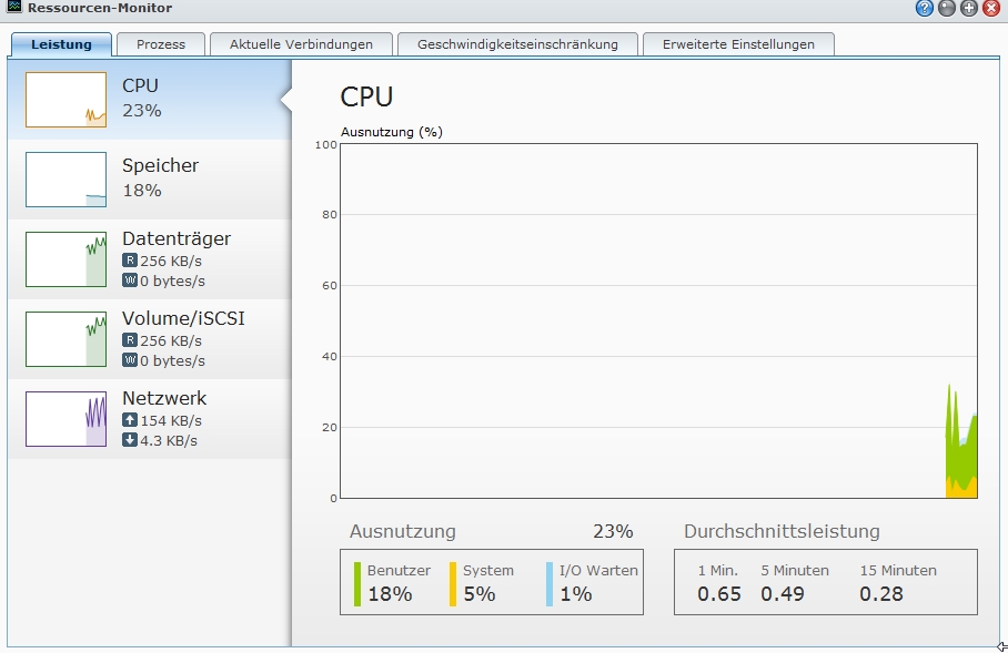 Das NAS hat nun eine Auslastung von 18-20%. Es sinkt ab un zu mal auf 8% oder steigt auf 25%. Aber der Schnitt liegt bei 19%. Ist dies nun der normale Wert? Noch habe ich das Umtauschrecht. Ich könnte auch die DiskStation 213 kaufen. Wäre schön, wenns nicht sein müsste.