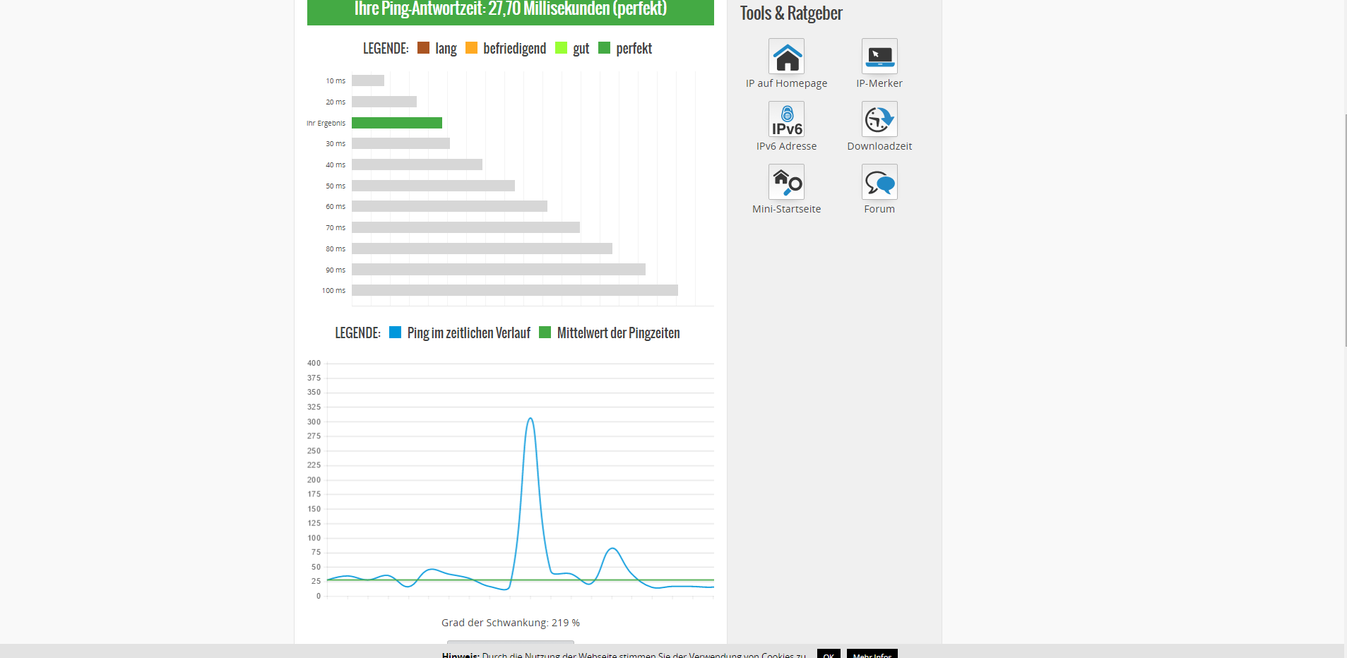 ich werde später auch noch ein PingPlotter von heute Abend hinzufügen