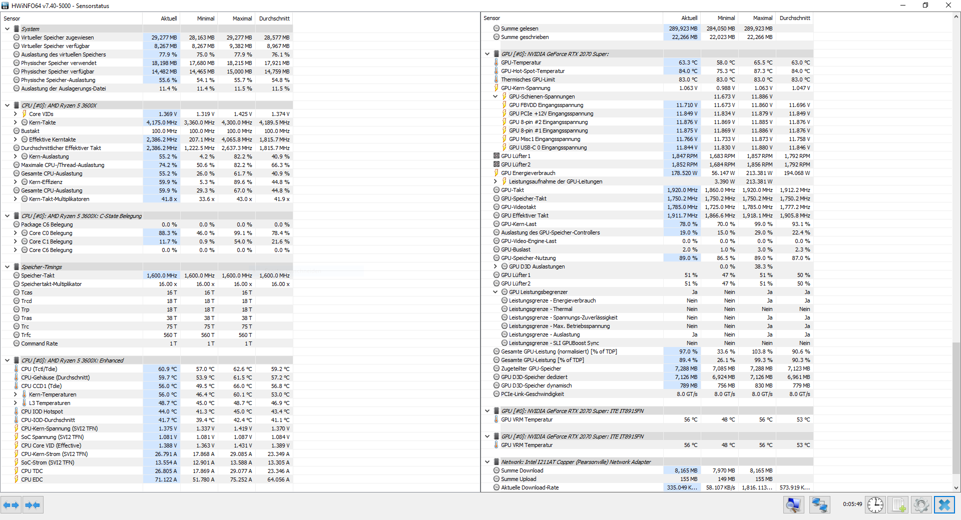 Hab jetzt mal auf den 4K Monitor gewechselt, alles auf Extrem gestellt. Sogar höher als Max wie vorher. Hat sich aber nichts an der FPS geändert. Den Auszug von HWInfo pack ich mit rein. Nebenbei zum Zoggen läuft gerade noch Malwarebytes mit nem Scan. Hat mir ein Freund empfohlen um sicherzugehen dass nicht irgendwas auf dem PC ist was noch nebenbei arbeitet oder Ressourcen frisst.