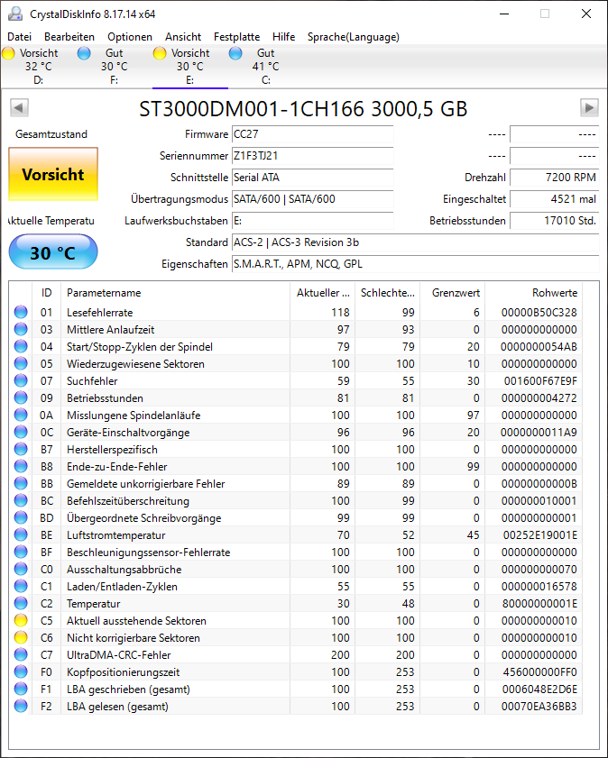 Puh also die Western Digital und die Seagate HDD sind nach meiner Google-Recherche beide ~12 Jahre alt. Und zeigen schon Lesefehler in Crystal-Disk.