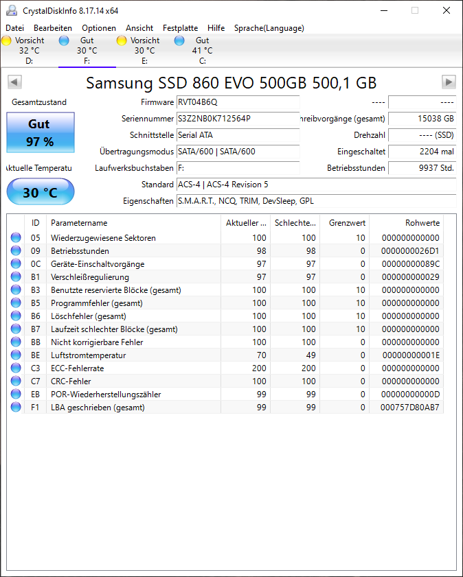 Und einmal die Festplatten checken wie @Bricki geschrieben hat mit der Samsung Magician Software.