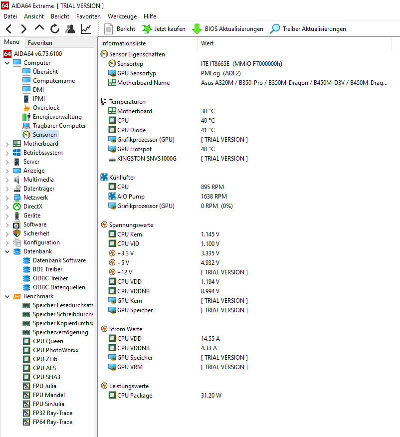 1. Festplatte 1000 GB M.2 PCIe 3.0 SSD Kingston NV1 (Lesen/Schreiben: max. 2100 MB/s | 1700 MB/s)