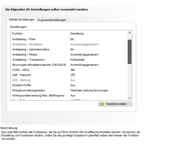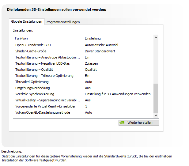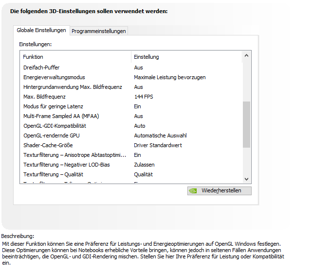 -Spiel Optimieren lassen und Nvidia einstellungen zurückgesetzt