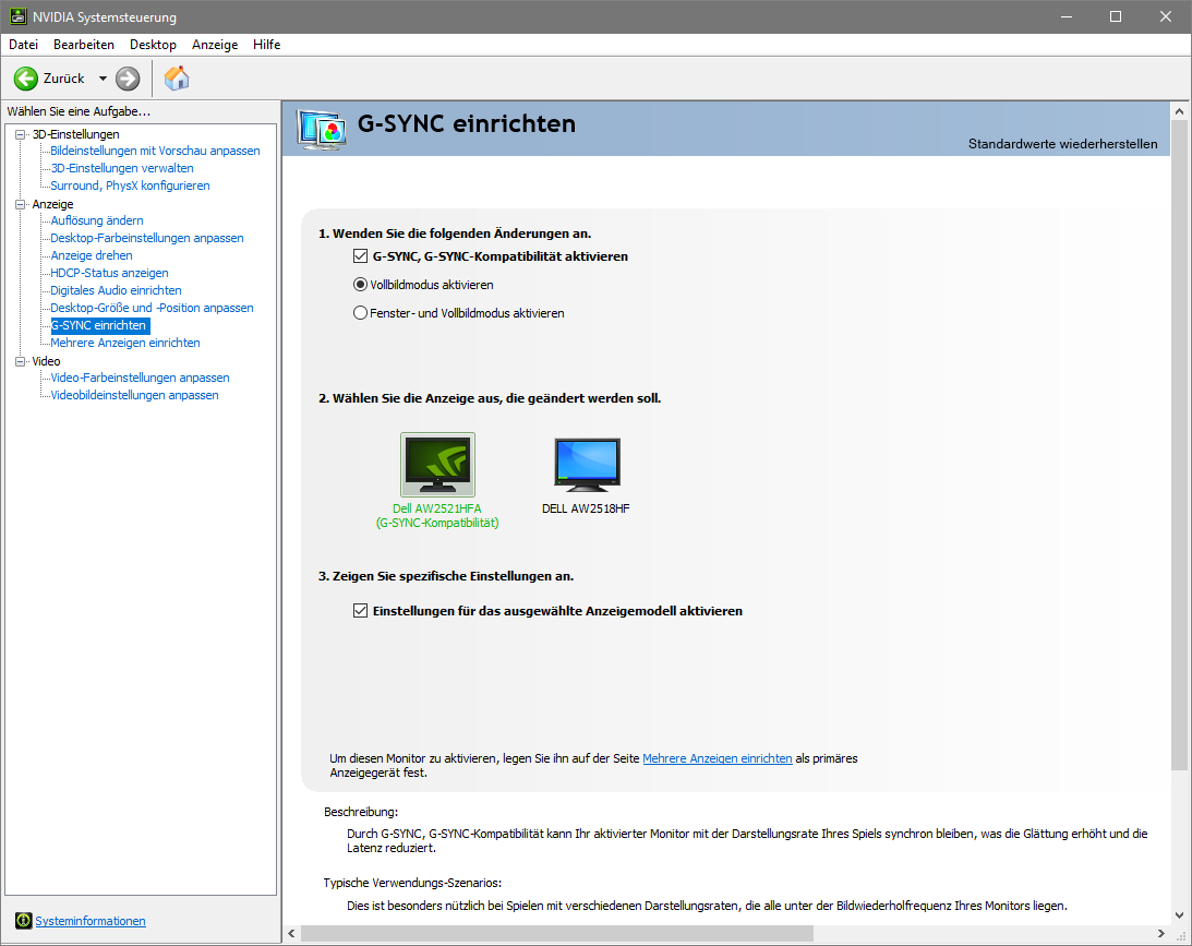 Die Gsync Einstellung fehlt da, also vermutlich gerade nicht aktiv, deswegen auch meine Frage nach den beiden anderen Menüs.