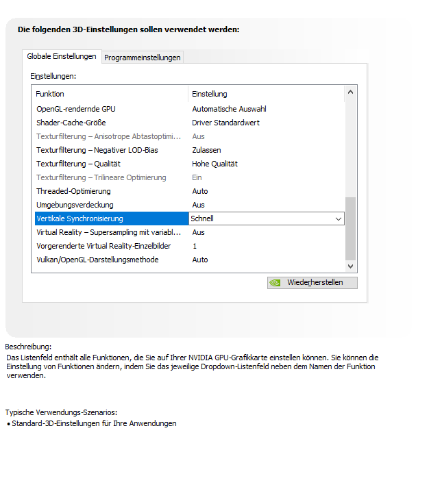Modus für geringe Latenz lasse ich bei mir aus, das kann durchaus einen negativen Effekt haben und ist tatsächlich nicht unbedingt dass was dran steht. Reflex wiederum kannst/solltest du verwenden falls im Spiel verfügbar, das egalisiert dann auch diese Treibereinstellung.