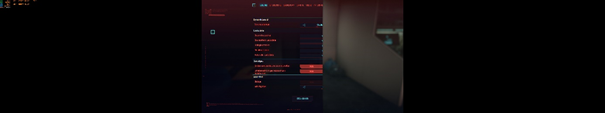 Dieser Screenshot zeigt Cyberpunk 2077 im Menü. Dieses ist bei 2/3 des mittleren Monitors abgeschnitten und damit ist das Spiel eigentlich nicht nutzbar. Wird die Auflösung dagegen auf 5760x1080 reduziert, läuft alles problemlos.