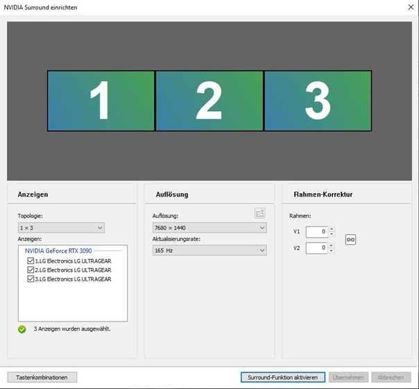 Der Gegencheck unter Windows bestätigt es, man hat nun eine nutzbare Auflösung von 7680x1440.