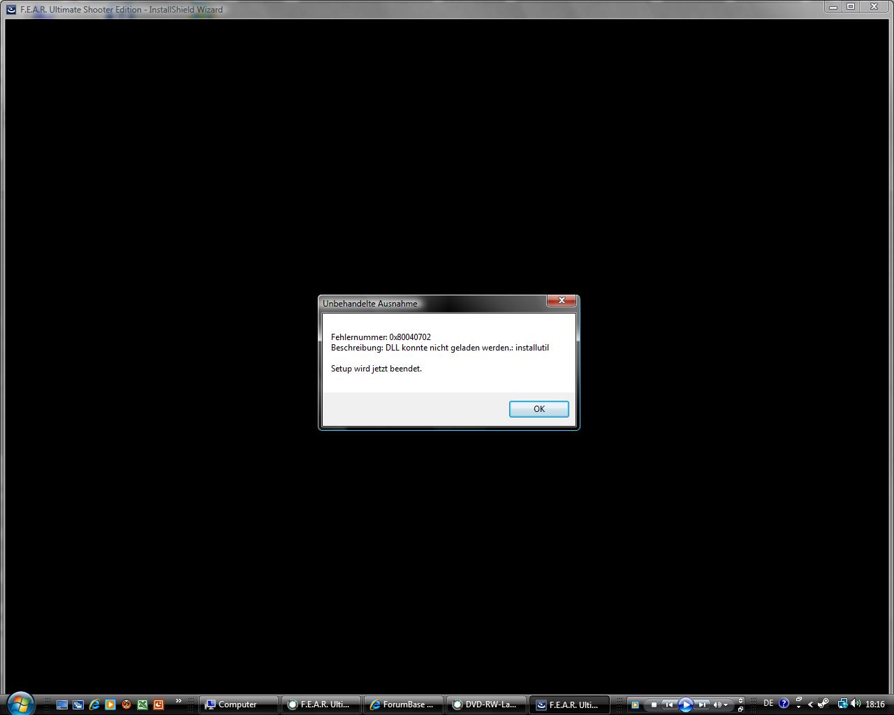 Wenn ich das Spiel installiere will kommt da eine Fehlermeldung: DLL konnte nicht geladen werden : installutil (screen)