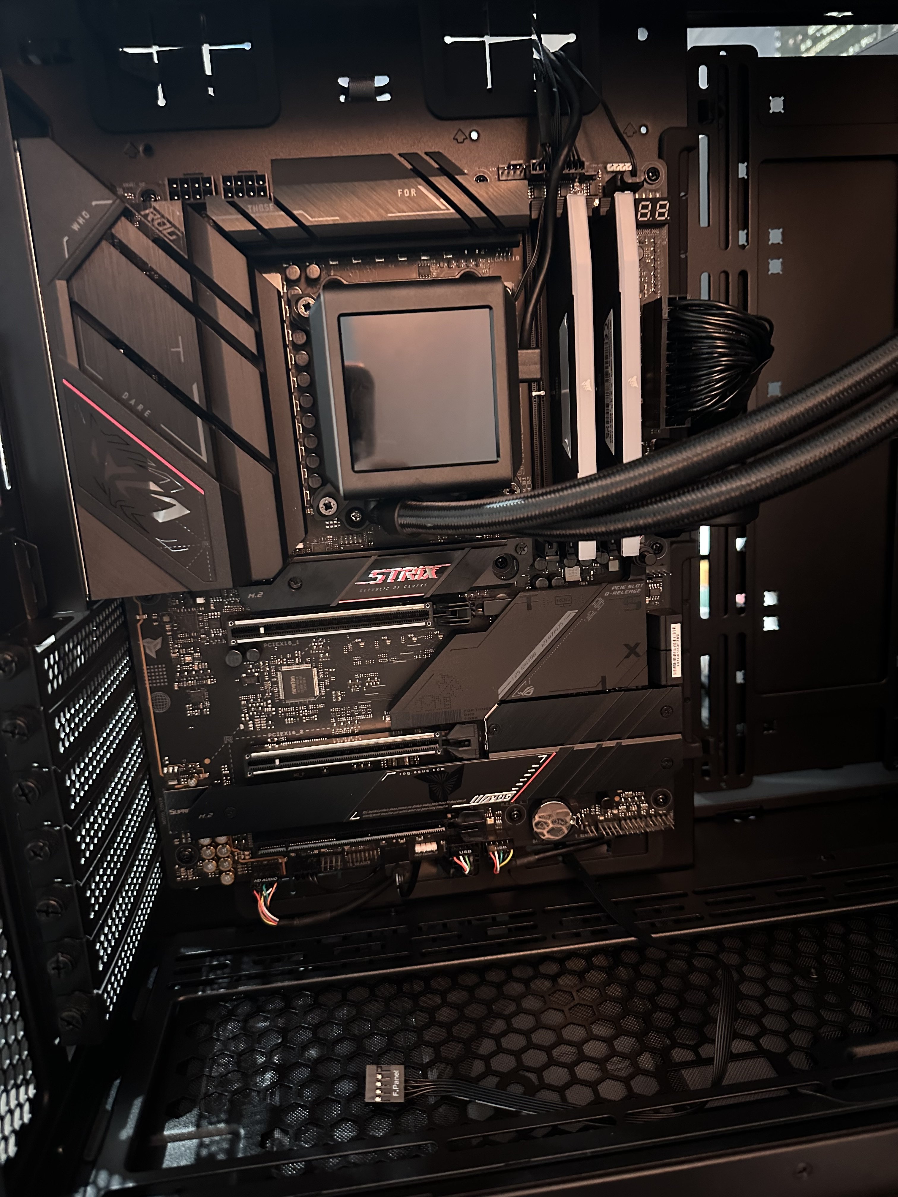 Hey ich habe das ROG STRIX B650E-E GAMING WIFI Motherboard und ein Lian Li EVO RGB Gehäuse, und davon kommt ein F Panel Pin, ich finde einfach keinen Anschluss.. kann mir einer weiterhelfen? Bin am verzweifeln, im Anhang paar Bilder vom Innenraum.