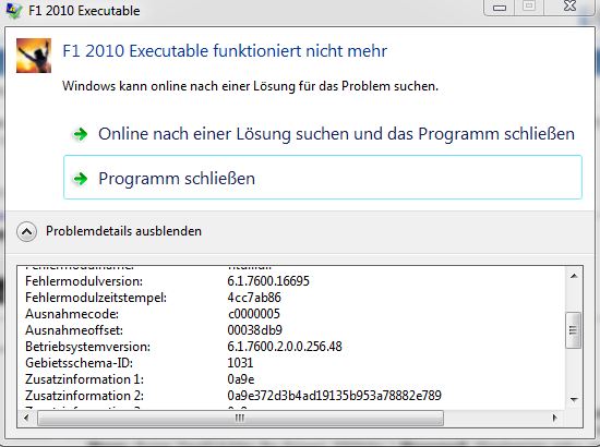 Hey Bei mir funktioniert Formel1 plötzlich nicht mehr. Habe gestern Nacht noch bisschen gespielt und heute wollte ich weiter spielen plötzlich kommt eine Fehlermeldung und weiß nicht weiter.