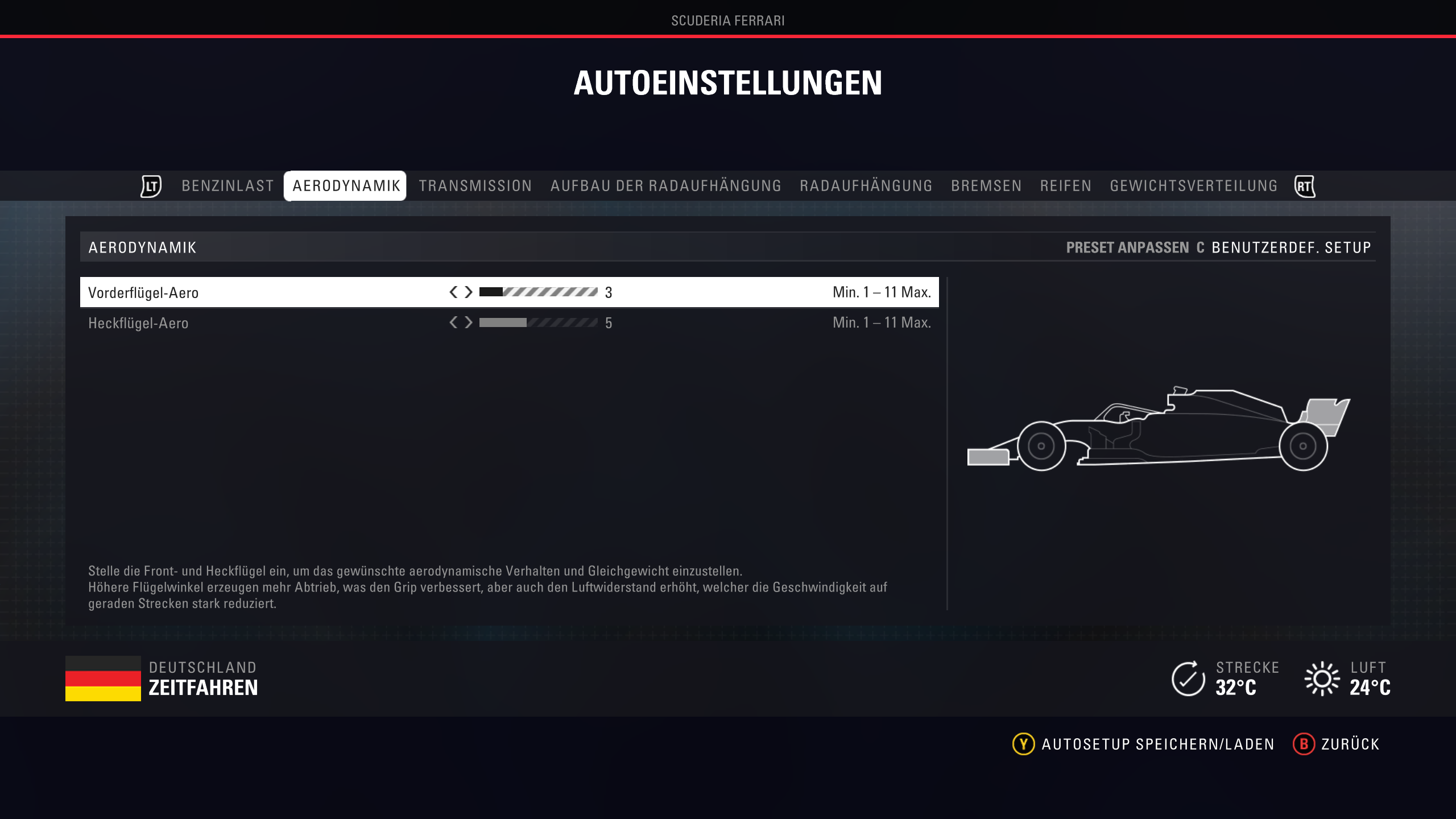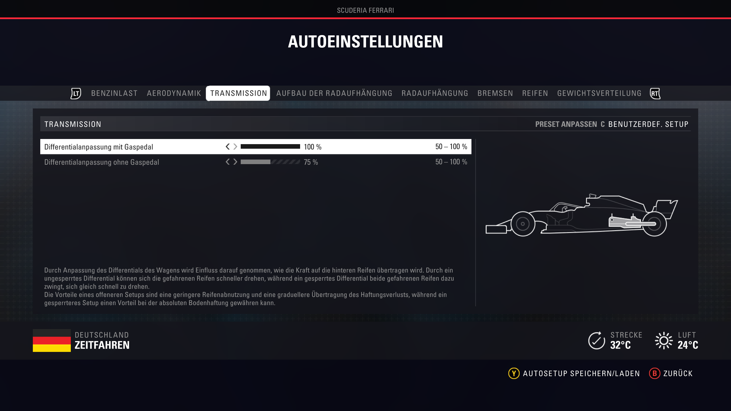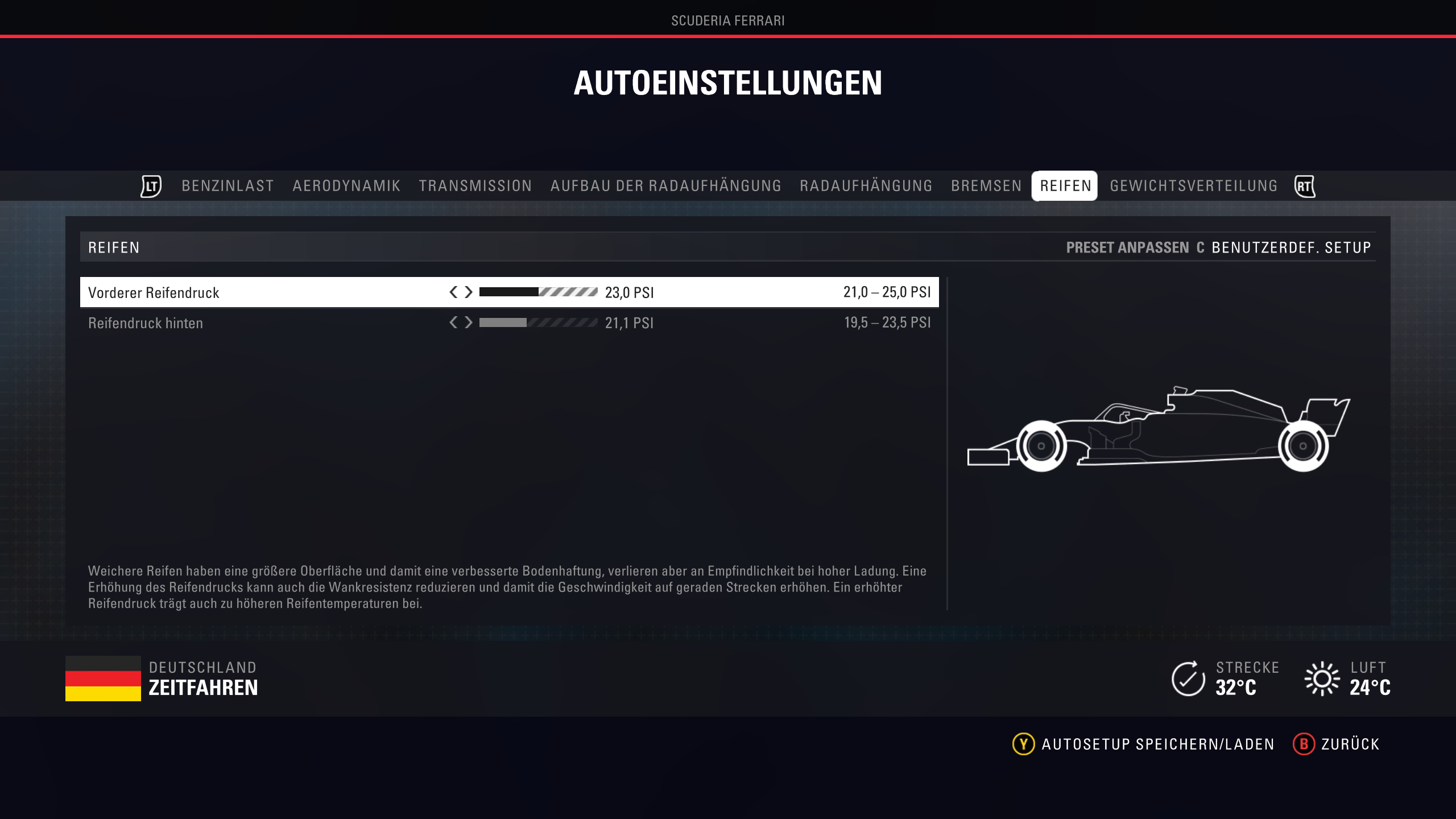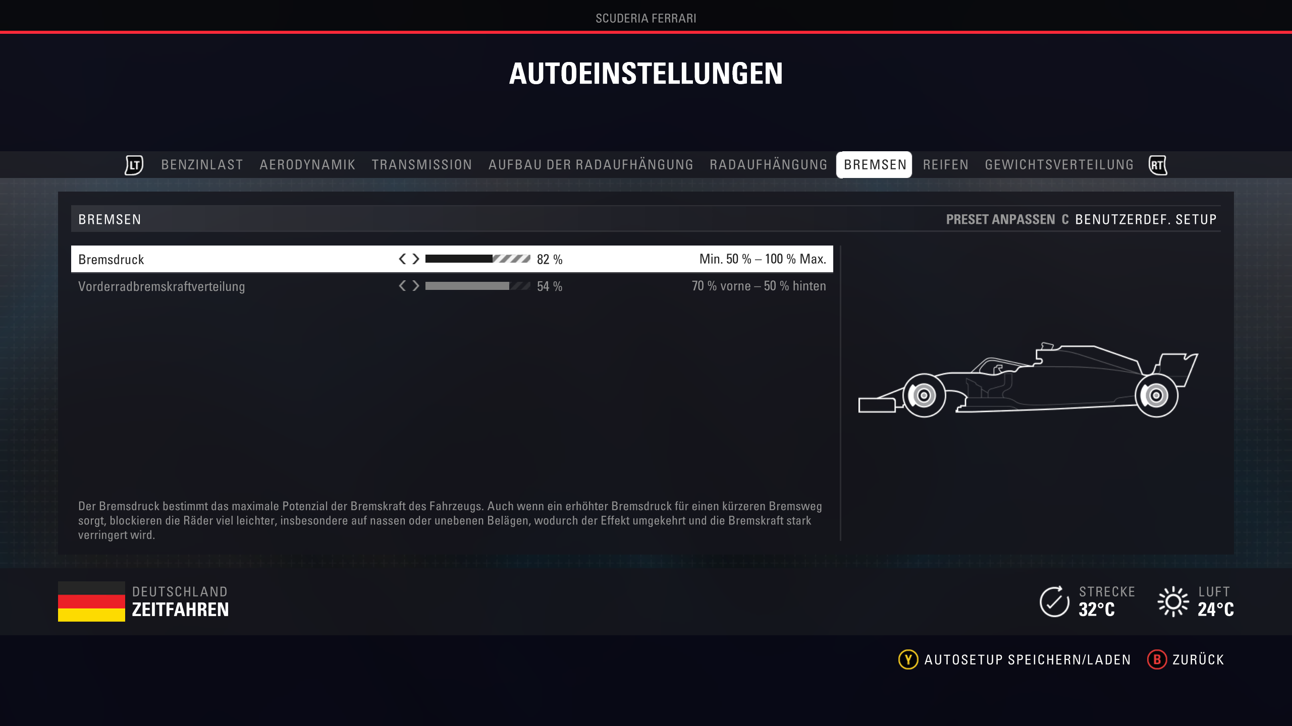 In Spielberg merk ich schon im T1, wo ich ca. 2sek vorne lieg, dass ich höher gehn muss. Aber ich fands bisher net. Ich glaub, ich sollte auf 60 gehen.