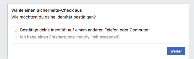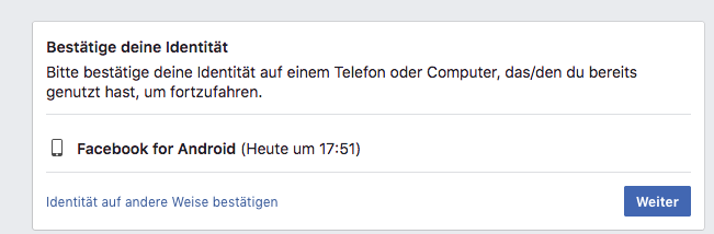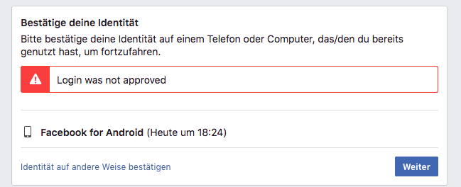 Dann erscheint: Ich soll mich mit einem Gerät anmelden, das schon mal mit Facebook benutzt wurde.