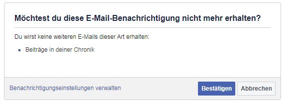 Aus Zeiten, wie die E-Mail Benachrichtigung noch funktionierte, habe ich mal einen screenshot aus einer alten Mail beigefügt. Dort hatte ich die Möglichkeit, E-Mail Benachrichtigung über Chronik Beiträge abzubestellen. Über den Link "Benachrichtigungseinstellungen verwalten" komme ich aber wieder auf die Standard Einstellungsseite der Benachrichtigungen, wo alles Mögliche an Benachrichtigungen einstellbar ist, aber "Beiträge in deiner Chronik" ist da definitiv nicht gelistet... Keine Ahnung, ob FB die Option gar nicht mehr anbietet.