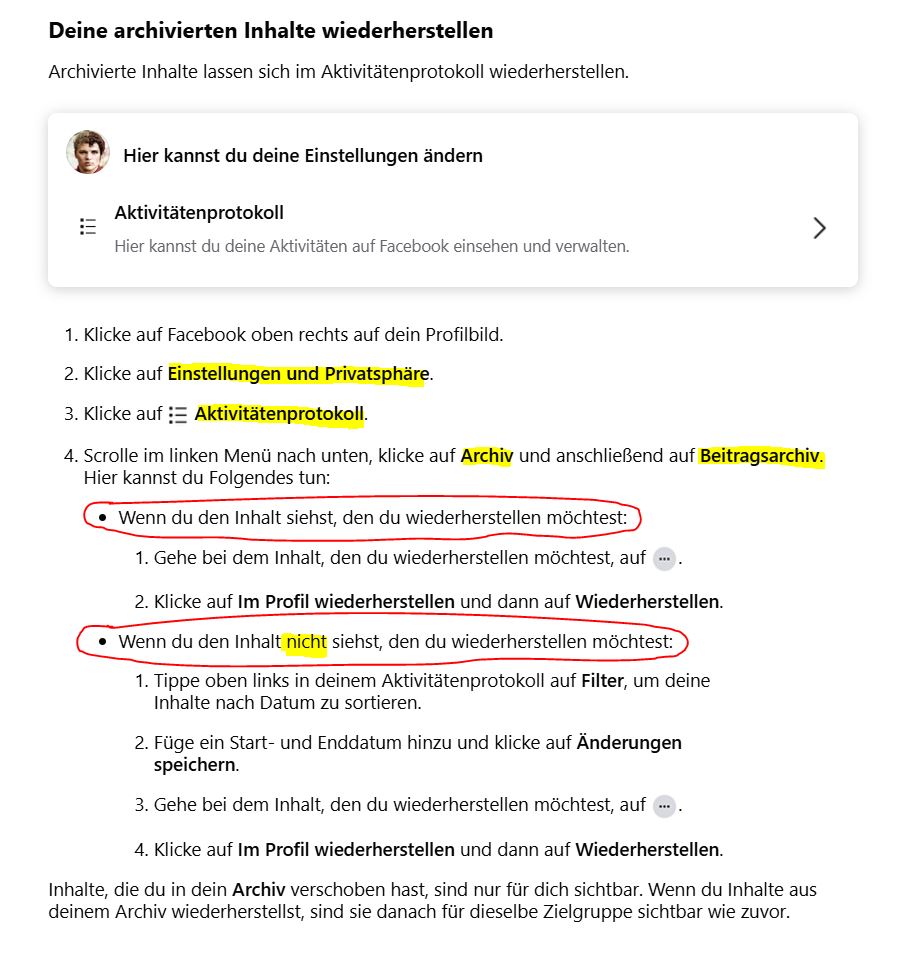 wie kann ich diesen einen artikel zurückholen ? wenn man googelt dann findet man hinweise, man möge doch im papierkorb nachschauen, denn der artikel sei dahin verschoben worden...aber da ist nichts. im "aktivitätsprotokol" auch nicht. facebook angeschrieben aber die antworten nicht.