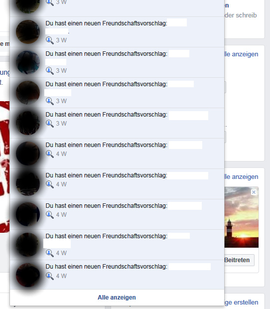 Auf meinem Spamfacebook für Aps etc. bekomme ich teilweise täglich mehrere Benachrichtigungen mit neuen Freundesvorschlägen.