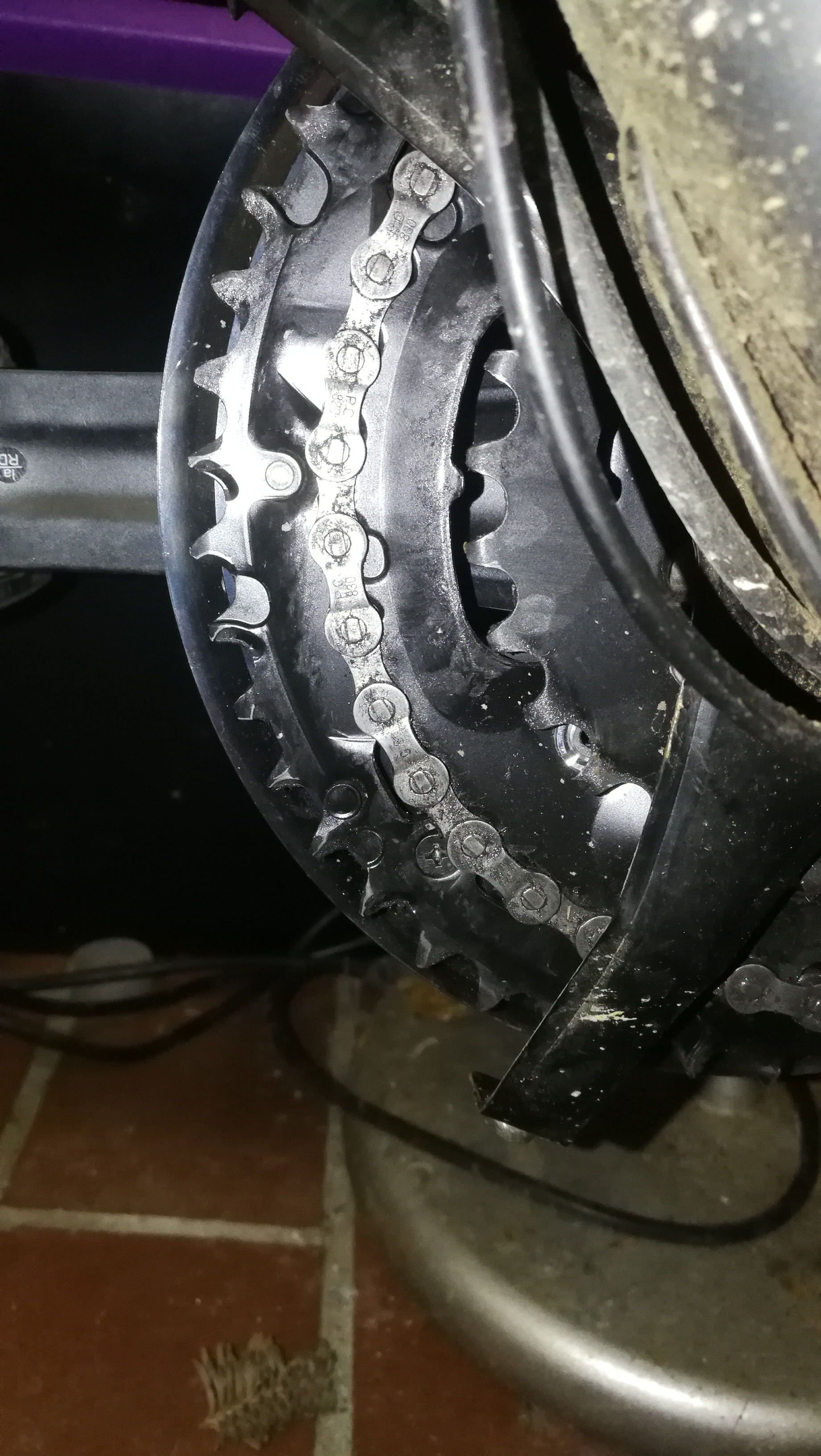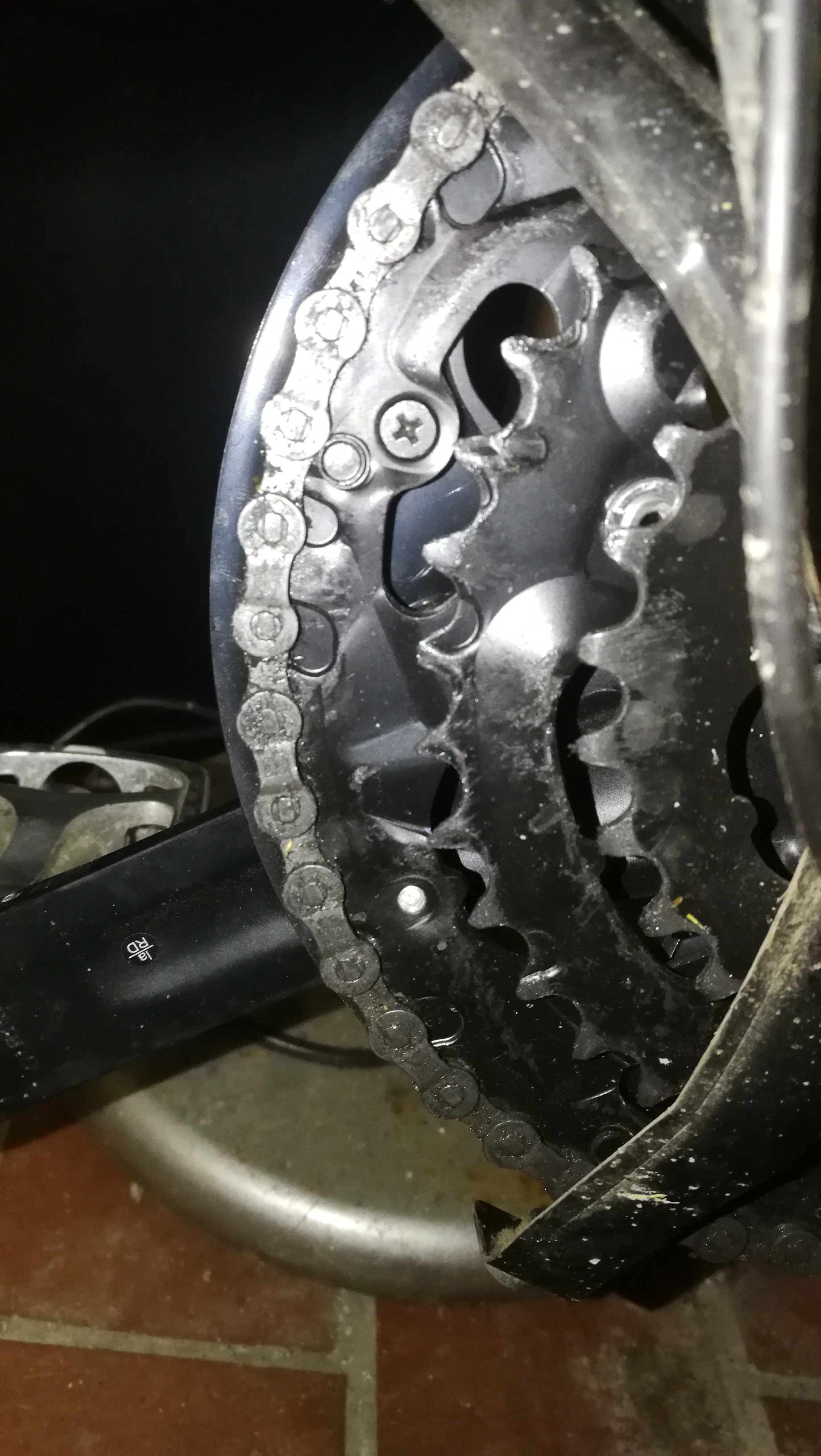 FYI; verbaute Komponenten, alle selbst neu im Laden gekauft und fast durchgängig im Einsatz: SRAM 9.0 Schaltwerk inklusive Gripshift, STX RC Umwerfer, LX Kurbeln (aus den Neunzigern), Stronglight Kettenblätter, Campagnolo C9 Kette, Deore 9-Fach Kassette. Die Kette ist die zweite seit 2013, genauso wie Ritzel und Kettenblätter.