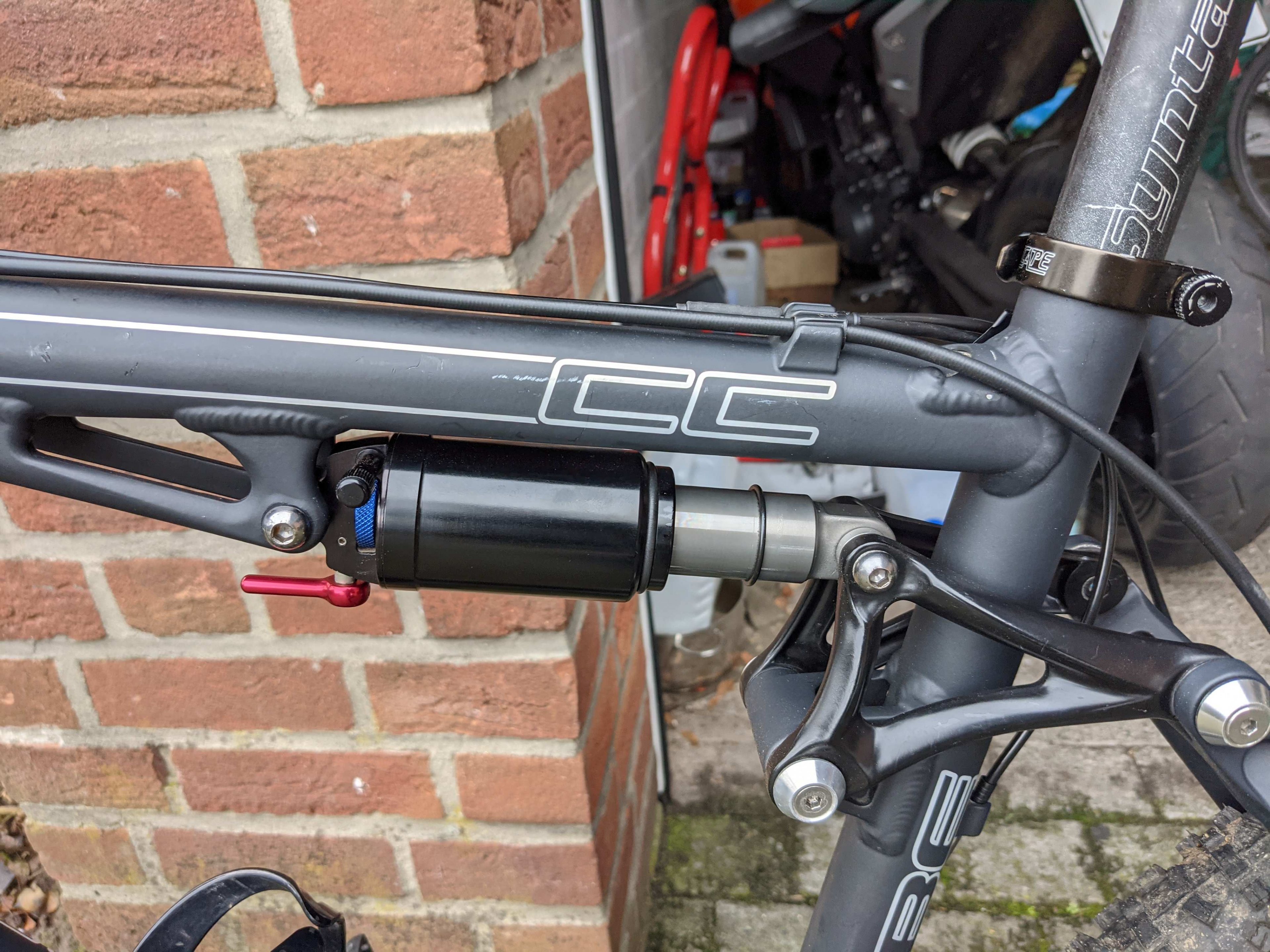 Rad ist soweit gut in Schuss, Federelemente wurden letztes Jahr gewartet. Laut Beschreibung soll der Dämpfer hinten ein Fox Float RP23 sein. die Beschriftung oder Beklebung ist aber nicht mehr vorhanden und der Dämpfer sieht anders aus. Kann den jemand identifizieren? Konnte keine Nummer oder sonstiges darauf finden.