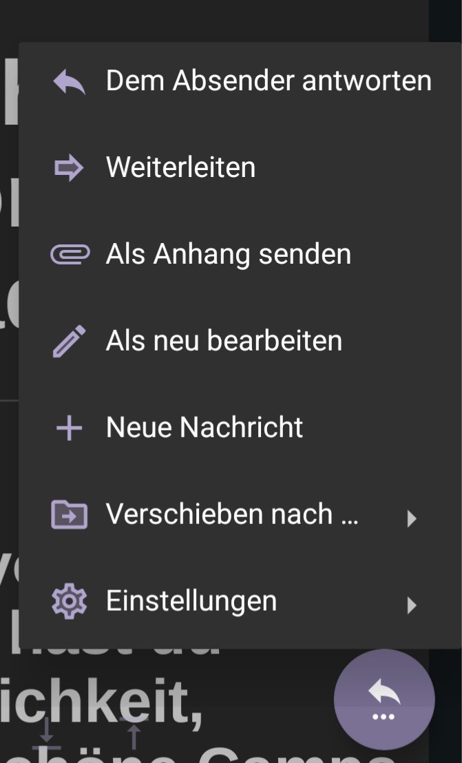 Und nun kann ich sie nicht mehr weiterleiten. Wenn ich kurz auf den Button drücke, antworte ich allen, wenn ich lang drücke, antwortee ich nur dem Empfänger. Aber ich finde nirgends in den Einstellungen die Möglichkeit, meine Einstellung zurückzusetzen.