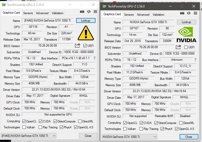 Laut GPUZ kommen 2 verschiedene Werte heraus.