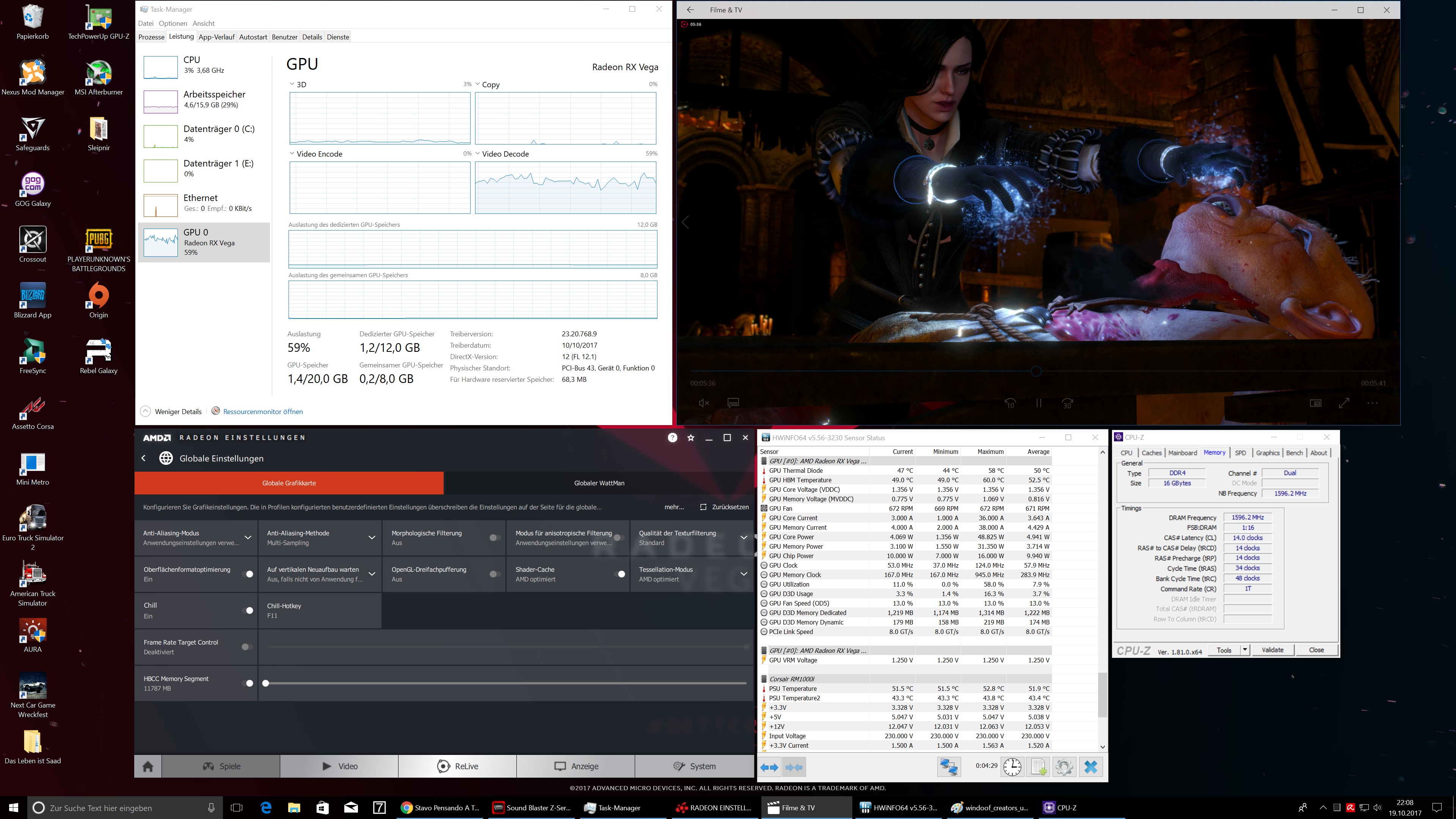 Nutze das Creators-Update zusammen mit der passenden Crimson BETA von AMD - das läuft astrein.