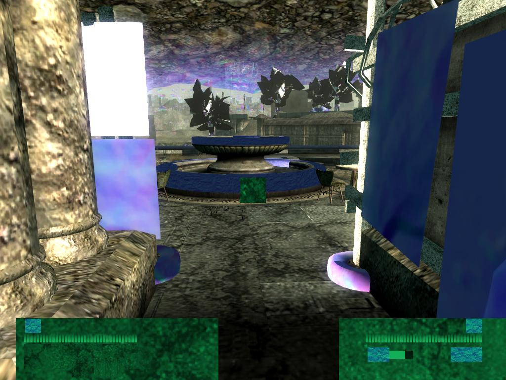 Als ich durch die stadt ging, musste ich 2 Supermutanten auf diesem komischen Tunnel zwischen den Häusern bekämpfen. Ich konnte es jedoch nie schaffen da ich hier immer die gleichen Grafikprobleme bekam. Das Bild blieb hängen und es gab sehr schwere Grafikfehler (Der Bildschirm bekam ein lila Muster, oder ich sah 4-5 tote Bäume im Ödland herumstehen) Von Sound her konnte ich erahnen das sie mich und meinen Hund gerade platt gemacht hatten. Das Spiel lief also noch weiter. Das selbe bekam ich auch als ich den Seeweg nahm und irgendwann an ein Memorial kam. Dort waren 2 Mutanten und 1 Hund (ob es meiner war oder einer von den Mutanten konnte ich dank der Grafikfehler nicht mehr feststellen).