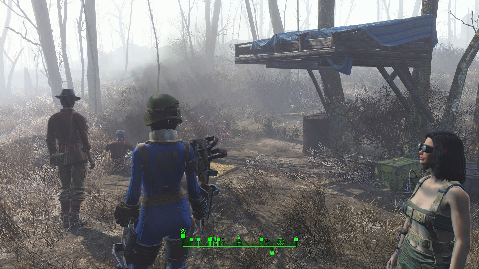 Ich hab Codsworth dabei, weil der streunende Hunde schnell zersägen kann. Und natürlich anderes Gesocks.