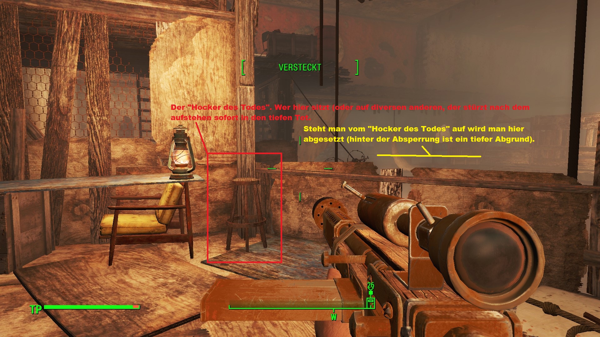 Ich suche noch immer einen Ort wo ich meine Sachen lagern kann und dann auch meine Ruhe habe (welcher auch nicht angegriffen werden kann sondern wo ich alleine bin). Sanctuary nervt mich total mit den anderen NPCs (mit denen man weder reden noch interagieen kann - außer tauschen). Die Red-Rocket Station ist zwar gut aber mir zu offen. Da habe ich keine Ahnung ob Feinde dort eindringen können. Ist ja so toll gemacht mit dem "Siedlung XY wird angegriffen - reise dahin zurück" und das immer zu einem unpassenden Moment. Und was lernen wir daraus: Mauern sind komplett nutzlos weil die Gegner einfach dadurch spawnen dürfen. Man sieht ja so oft Bilder wo Sanctuary komplett mit einer Mauer geschützt ist - was absolut sinnlos ist und genau null bringt. Wird auch hier gesagt: