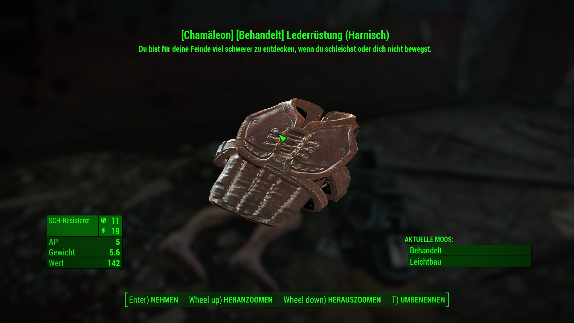 Als ich in Lexington unterwegs war habe ich eine Lederrüstung bei einem Ghul gefunden (siehe Anhang). Diese bringt einem ein Bonus - und eignet sich aicher gut zum schleichen (was meine bevorzugte Spielweise ist). Nur ist die so unendlich und unglaublich nervtötend ... wer macht sowas blos? Denken sich die Entwickler wenn sie am Morgen ins Büro kommen "Na, was können wir heute einbauen um den Spieler in den Wahnsinn zu treiben?". Dieses ewige "pling, pling, pling"-Geräusch der Rüstung hat mich eher dazu getrieben diese im Inventar versauern zu lassen. Gibt es da vielleicht eine Modifikation gegen?