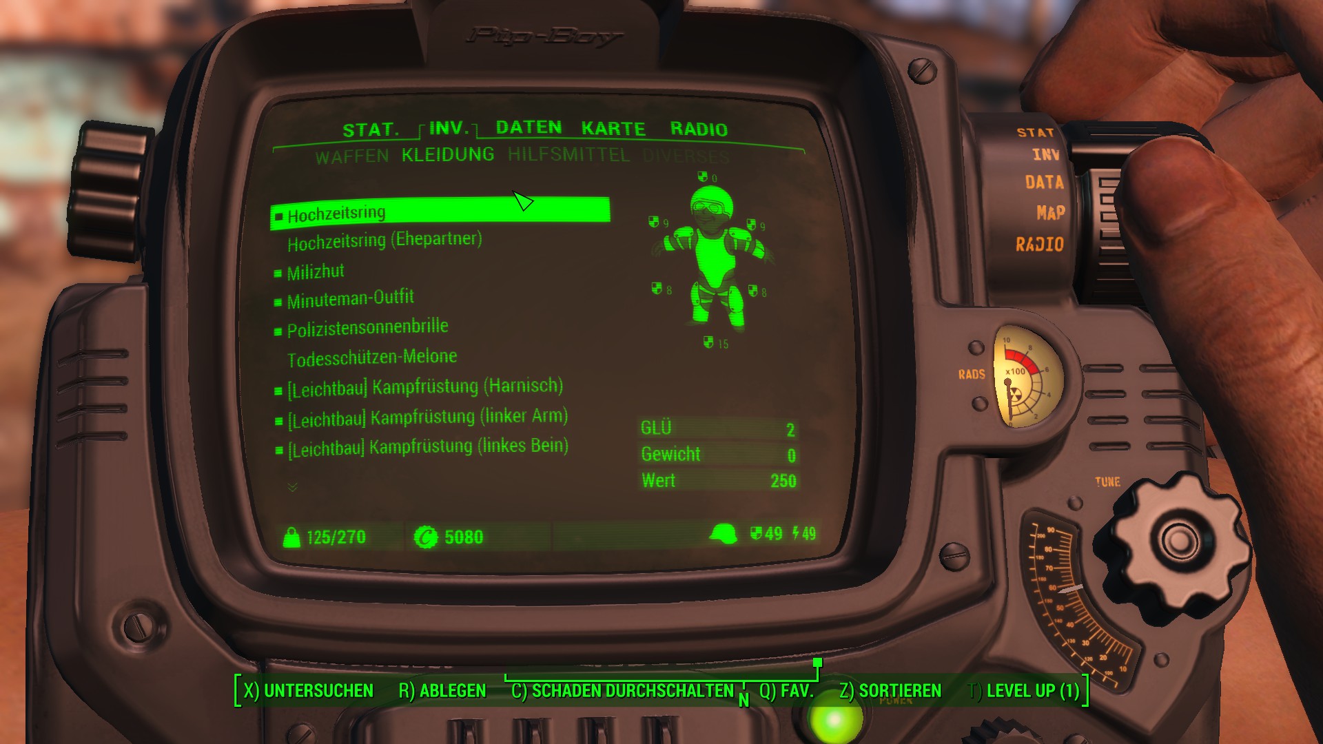Vorhin, in einem kleinen Kampf mit Raidern und wilden Hunden, warf ich eine Handgranate (darin bin ich so geübt wie Gronkh - ist ein Treppengeländer in der Nähe dann treffe ich es ausversehen garantiert und die Granate kommt zurück). Als ich den Leichen behutsam ihre Sachen plünderte sah ich dass darunter ein namentlicher NPC war, "