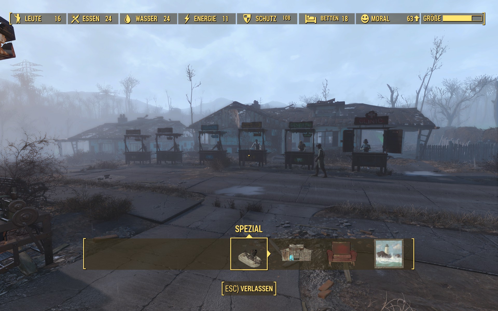 so, ich fange jetzt auch langsam an, mir eine siedlung zu bauen, mit der ich mich etwas identifizieren kann. ich habe allerdings die tankstelle neben der ersten stadt gewählt. gefällt mir besser. ist kompakter und leerer. man kann auch auf dem dach bauen, was ich tatsächlich getan hab. war etwas umständlich die treppen so zu platzieren, dass man aufs dach kommt und so dass es einigermaßen ok aussieht. screenshots folgen. im moment lohnt es sich noch nicht. sanctuary werd ich wohl komplett links liegen lassen.