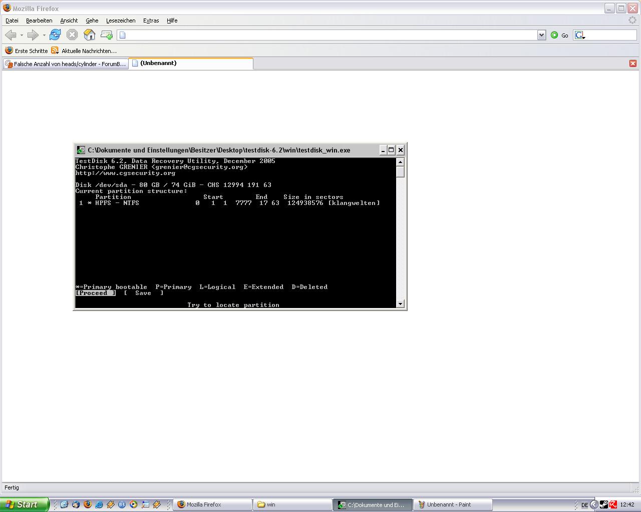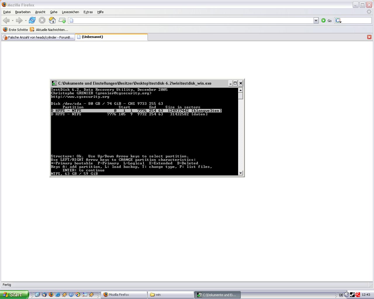 Durch Testdisk habe ich die eine Festplatte wieder. Und die andere erkennt er nach einem deepscan mit dateistruktur. Als Meldung bekomme ich : Incorrect number of heads/cylinder