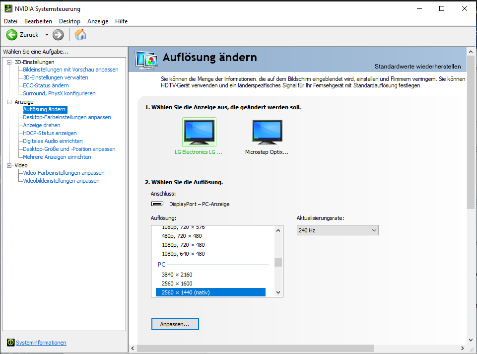 ich habe den LG 27GR95QE. Bis vor kurzen hatte ich eine 6900XT dort war alles super auflösung immer WQHD. 240 Hz und jedes Spiel soweit möglich Vollbild.