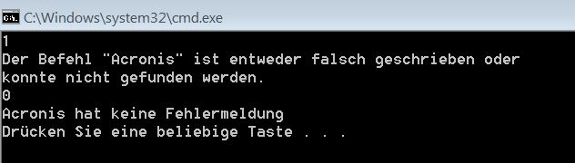 was ich jetzt nicht verstehe ist, warum das erste echo die Fehlermeldung bringt das der Befehl "Acronis" nicht zu finden sei, im zweiten Echo das aber nun kein Problem ist....