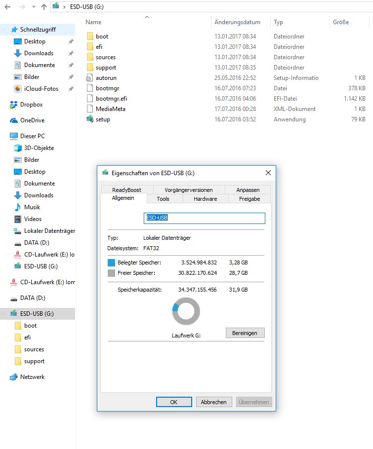 Ich habe eine externe Festplatte Windows bootfähig gemacht. Leider war es das falsche Speichermedium