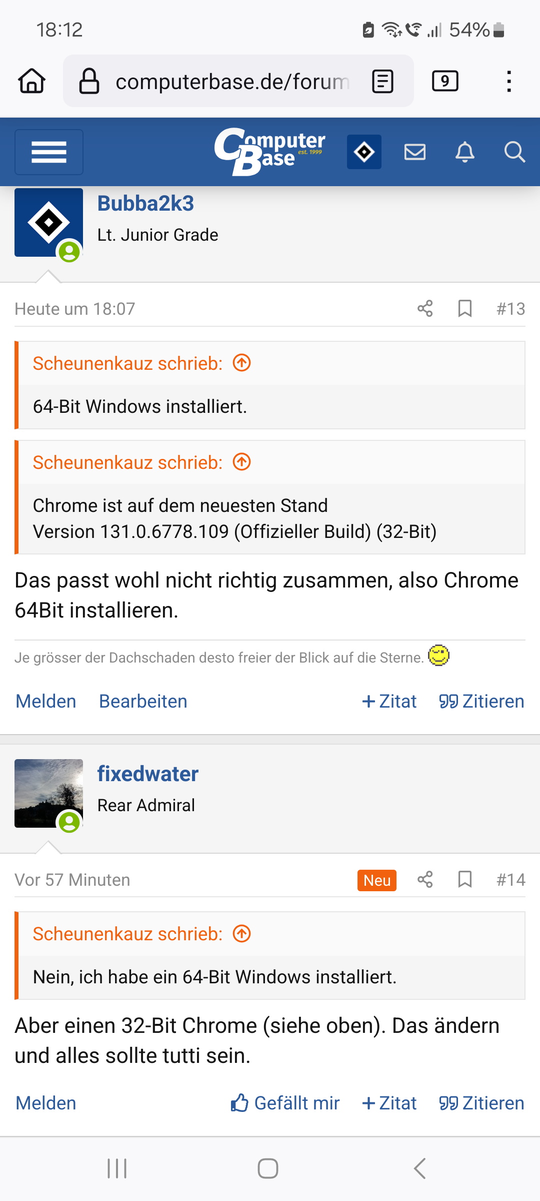 Ach Mist, eine Minute später scheint es wieder zu passen. Hab noch einen Screenshot einen Moment früher, da fehlt nur die Zeit vom Vorletzten Beitrag.